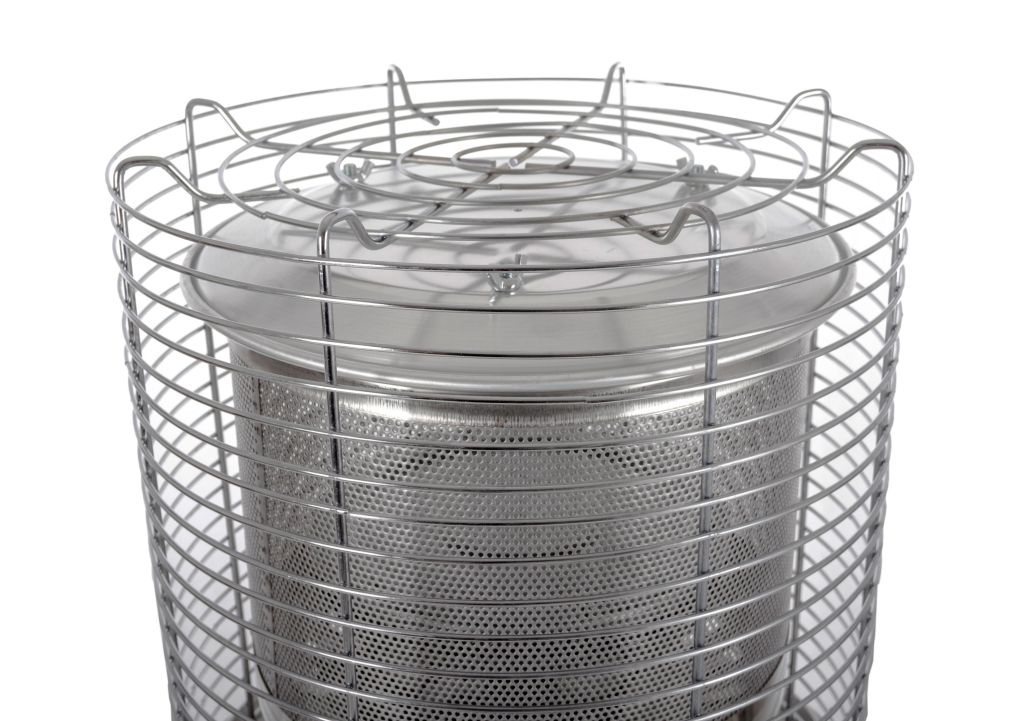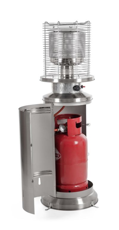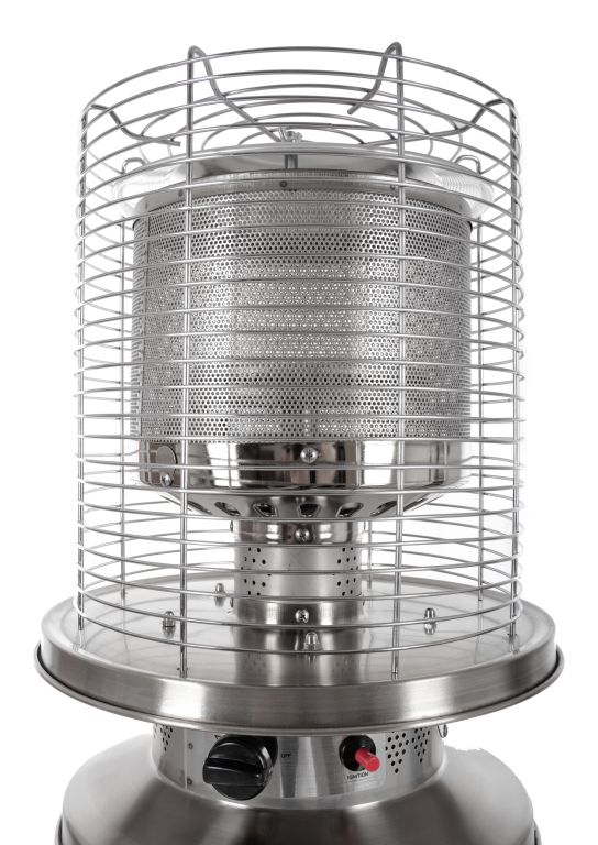 Venkovní ohřívač je v atraktivním provedení z kvalitních materiálů, z nerezové oceli a hliníku. Teplo z něj díky výkonnému hořáku sálá ihned po zapnutí. Ovládání je snadné, stačí jen napojit tepelný zářič na propan butanovou lahev, pro jejíž ukládání je prostor ve stojanu teplometu. Pak zmáčknete tlačítko bezpečného a rychlého pulzního zapalování a exteriérový tepelný zářič začne hřát. Kvůli bezpečnosti je tepelný plynový zářič jištěn pojistným bezpečnostním ventilem, který zastaví přívod plynu při případném převrácení topidla.