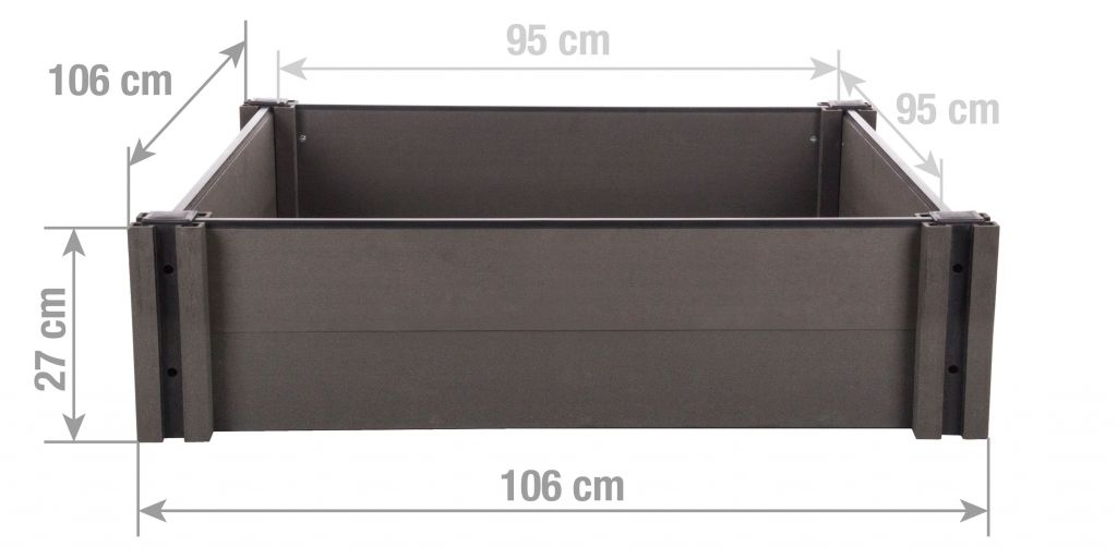 Odolný bezúdržbový vyvýšený záhon G21 Crop s výškou 27 cm s plochou 0,9 m2 pro větší úrodu zeleniny i pěstování bylinek nebo květin. Prvotřídní materiál, snadná montáž, vynikající vlastnosti. Vyvýšené záhony G21 vyrábíme v jižních Čechách a dáváme si na nich opravdu záležet. Záhon G21 Crop je odolný a stálobarevný. Nemusíte se o něj nijak starat, protože je naprosto bezúdržbový. Vyvýšený záhon G21 Crop můžete umístit kdekoliv, na zatravněné ploše i na suché nebo písečné půdě. Do záhonu si můžete připravit kvalitnější zeminu, takže pěstované rostlinky, bylinky nebo květy dostávají víc živin a jsou i chráněny před škůdci, jako jsou například slimáci. V záhonu s výškou 27 cm můžete využít i výhod vrstvení. Materiál WPC (Wood plastic components) je směs tvořená z 60 % z dřevitých vláken a ze 40 % z plastu. S pomocí vlivu tlaku a teploty (extrudace) vzniká odolný a bezúdržbový materiál, který je praktický a po všech stránkách vysoce užitkový. WPC materiál je díky svým vlastnostem vhodný pro použití na místech, kde dochází k působení všech běžných vlivů venkovního prostředí jako je např. vlhko, sluneční záření, déšť, vítr, mráz, atd.