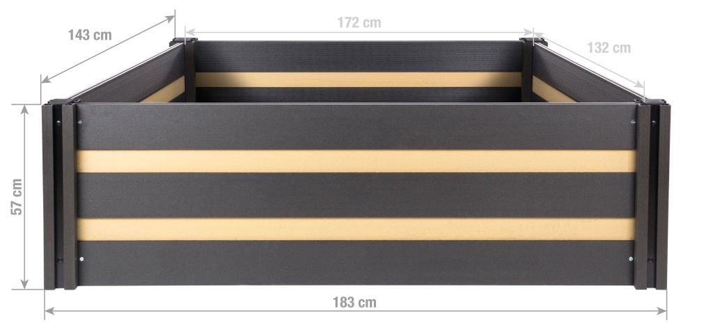 Odolný bezúdržbový vyvýšený záhon s plochou 2,27 m2 pro větší úrodu zeleniny i pěstování bylinek nebo květin.