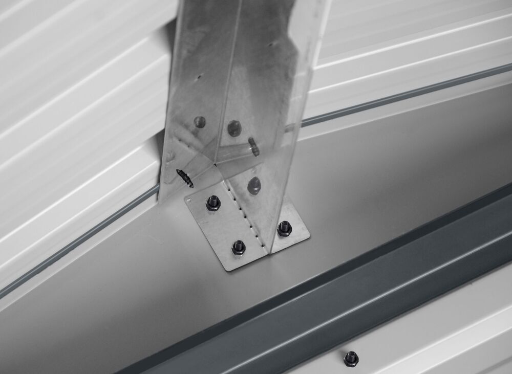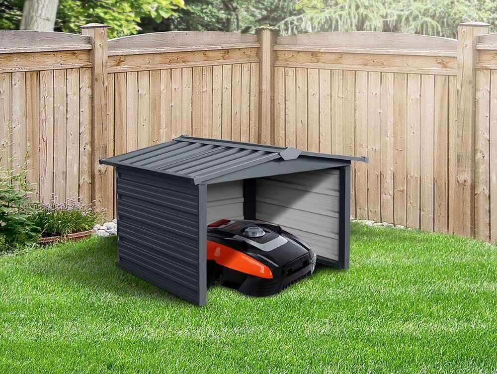 Garáž pro robotickou sekačku. Efektivní úschova. Elegantní řešení pro nenápadné uschování robotické sekačky. Pozinkovaný rám - tloušťka 0,6 mm Pozinkované plechy - tloušťka 0,25 mm Součástí jsou 2 druhy kotev a šroubů - pro travnatý nebo betonový povrch