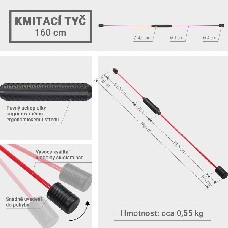 Gorilla Sports Kmitací tyč, červená/černá, 160 cm