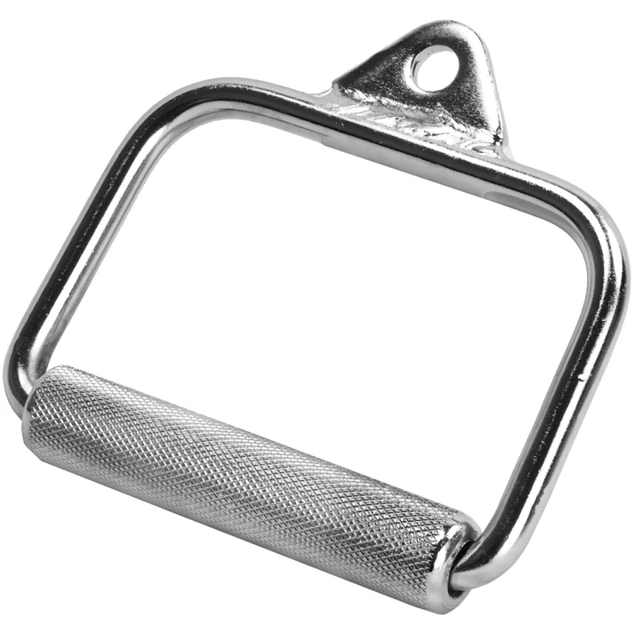 Jednoruční rukojeť na kladku je praktické příslušenství pro rozšíření tréninku na kompatibilním posilovacím zařízení. Umožní provádět tahové cviky jednou rukou a lépe se soustředit na kontrolovaný pohyb. Hodí se pro cviky vedené shora, zdola nebo z boku podle možností konkrétní kladkové stanice. Rukojeť má kovové provedení, stříbrný povrch a vroubkovanou úchopovou část, která pomáhá jistějšímu držení při cvičení. Upevňovací otvor slouží k připojení ke karabině nebo jinému kompatibilnímu systému kladky. Délka rukojeti je 15 cm, průměr úchopu 2,5 cm a maximální nosnost podle dodaných údajů činí 200 kg.