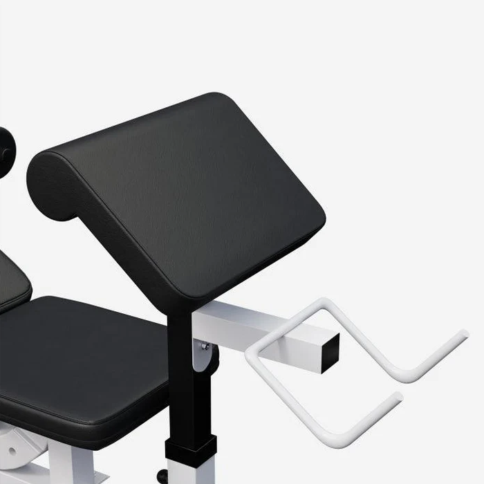 Robustní konstrukce z litiny zaručuje dlouhou životnost a bezpečnost při cvičení. Šestisměrně nastavitelné opěradlo, tři polohy pro leg press a pětisměrný stojan na činky umožní přesné přizpůsobení vašim potřebám. Rychlá montáž a snadná údržba dělají z této stanice ideální volbu pro každého, kdo chce mít kvalitní domácí posilovnu.