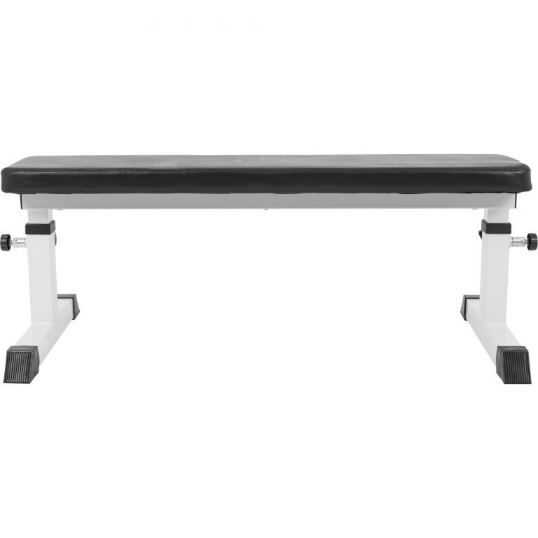 Díky čtyřem nastavitelným výškám je toto klasické tréninkové zařízení vhodné pro všechny velikosti postavy. Prostřednictvím různých cviků s činkami a závažími procvičíte hrudník, paže, zádové svaly, ramena i břicho. Nastavitelná plochá lavice s robustním rámem z bílé oceli vydrží opravdu mnoho, zatímco nohy s protiskluzovými gumovými krytkami poskytují stabilní oporu. Pomocí rychloupínacího šroubu si můžete nastavit výšku. Robustní a snadno udržovatelné sedadlo z černé imitace kůže poskytuje ideální tréninkový povrch.