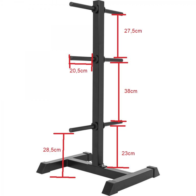 stojan je vhodný na kotouče s otvorem o průměru 30/31 mm přičemž délka každé tyče na závaží je 20 cm a nosnost jednoho držáku 35 kg.