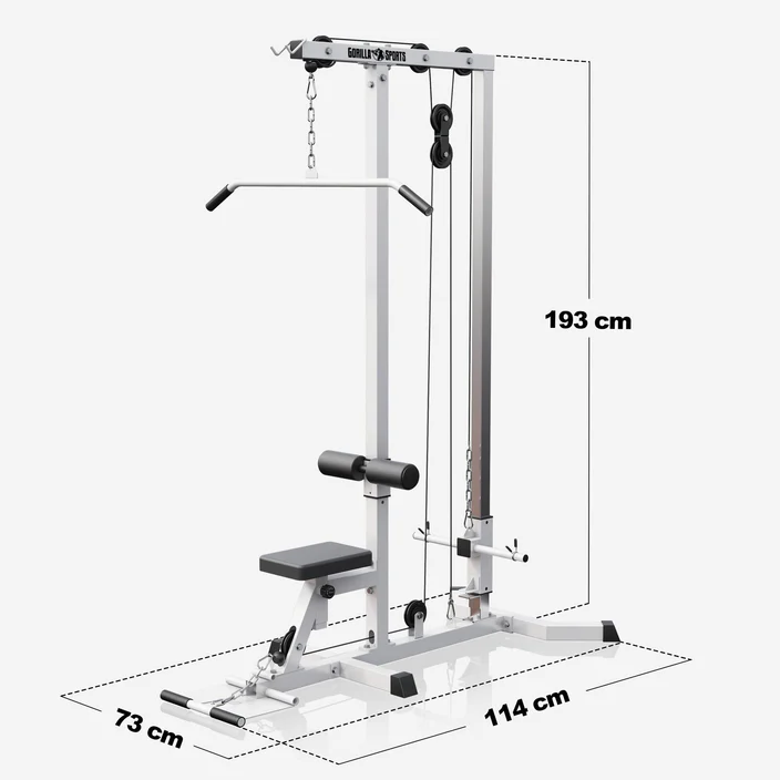 Pro dobré proporce těla jsou kromě hrudníku klíčová záda. S touto kladkovou stanicí v bílé barvě od Gorilla Sports se trénink zad stane potěšením. Dvě zahrnutá řídítka poskytují rozmanitost. Kromě klasických lat pulldown za krk můžete tuto stanici v bílé barvě použít také k provádění lat pulldown na hrudník nebo cable crunch. Těmito cviky oslovíte části zad, na které se normální stahování šířky nedostane. Chtěli byste více cvičení? Poté nechte lano projít spodním vývodem.