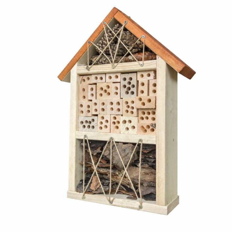 Mezi nejčastější obyvatele hmyzích hotelů patří samotářské včely, které patří mezi vyznamné opylovače. Kromě včelek samotářek zde můžete najít úkryt i motýli a pestřenky, jejichž larvy likvidují škodlivý hmyz. Další obyvatelé, jako jsou zlatoočka, berušky a škvoři, požírají škodlivý hmyz, především mšice. Proč mít hmyzí hotel ? Hmyz nám pomáhá s likvidací škůdců (mšice atd), zvláště tehdy, pokud se chceme vyhnout chemickým přípravkům. Lidé si také mnohdy neuvědomují, že bez hmyzích opylovačů bychom se ani nedočkali velké úrody. Většina ovocných stromů, ale potřebuje ke svému opylení hmyz. Kam hmyzí hotel umístit ? Výš od země, nejlépe na strom, nebo zeď. Na jižní stranu, kde bude chráněn proti dešti a větru. Na větší plochu doporučujeme umýstit více hotelů.