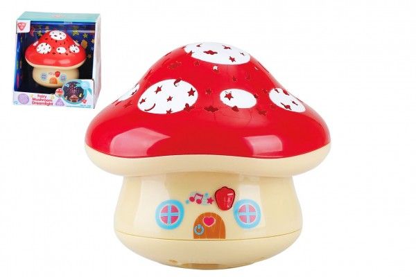 Pohádková muchomůrka promítá barevné hvězdičky a různé tvary po stěnách a stropu. Ukolébávající melodie a hudba podporují uspávání a klidný noční spánek. Světlo zhasne po 30 minutách. Na baterie 3 x AAA, které nejsou součástí.