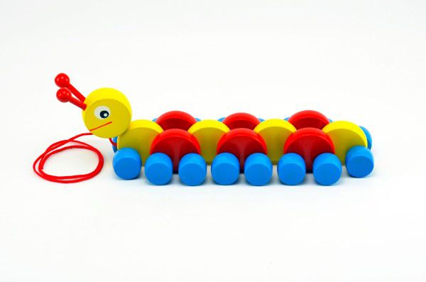 Housenka dřevo tahací barevná 27cm v krabičce
