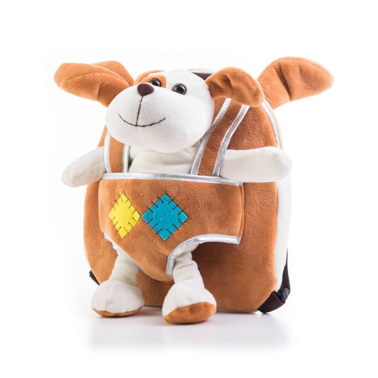 Hračka G21 Batoh s plyšovým pejskem, oboustranný, hnědý