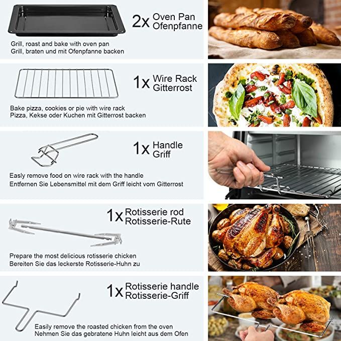 Tento kuchyňský spotřebič je tím pravým řešením pro malé kuchyně. Naše mini trouba s příkonem 2000 W a objemem 48 litrů vám pomůže dosáhnout vynikajících výsledků pečení. Černý plášť dokonale ladí s jakýmkoli interiérem kuchyně v garsonkách, na kolejích, v karavanech a jiných malých domech. Díky nastavení časovače už nikdy nepřipálíte jídlo.