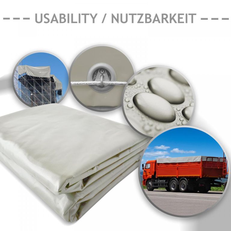 Plachta je vyrobena z pevné tkaniny s PVC povlakem, což zajišťuje dlouhou životnost a snadnou údržbu. Materiál je voděodolný, odolný vůči UV záření, hnilobě a plísním. Díky rozměru 4 x 3 m a hmotnosti 650 g/m² je vhodná pro široké využití v domácnosti i na stavbě.