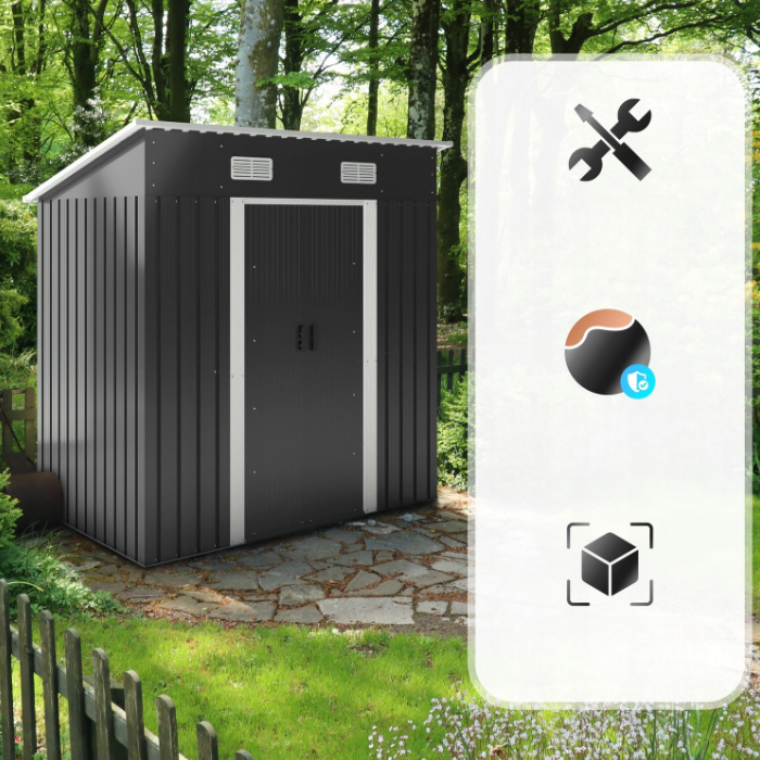 Vítejte v našem zahradním ráji! Představujeme vám úžasný Jago® Zahradní domek, váš spolehlivý partner pro perfektně uspořádanou zahradu! Tento zahradní domek je více než jen praktický přístřešek pro vaše zahradní nářadí a domácí potřeby. Je to stylový klenot, který dodá vaší zahradě neodolatelný šarm. S kompaktními rozměry, které neovlivní celkový vzhled vaší zahrady, vám přesto poskytne dostatek prostoru pro ukládání veškerého nářadí. Díky povrchu z praktické pocínované oceli a odolnosti proti povětrnostním vlivům si tento zahradní domek poradí s každým výzvou, kterou na něj počasí vrhne. Zapomeňte na rezavění a starosti s údržbou! Jeho odolnost vůči UV záření ho chrání před vyblednutím a zajišťuje, že vaše cenné nástroje zůstanou v perfektním stavu. Dveře tohoto domečku jsou posuvné, což zajišťuje snadný přístup a maximalizuje prostor uvnitř. Navíc čtyři větrací mřížky zaručují optimální cirkulaci vzduchu, což je klíčové pro udržení vašeho nářadí v perfektním stavu. Montáž tohoto zahradního domku je rychlá a jednoduchá. S jasným návodem a pomocí druhé osoby ho postavíte během 2-3 hodin. Můžete si být jistí, že se vám to povede!