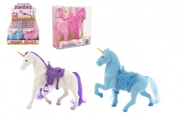 Jednorožec kůň fliška se sedlem 16 cm 3 barvy v krabičce