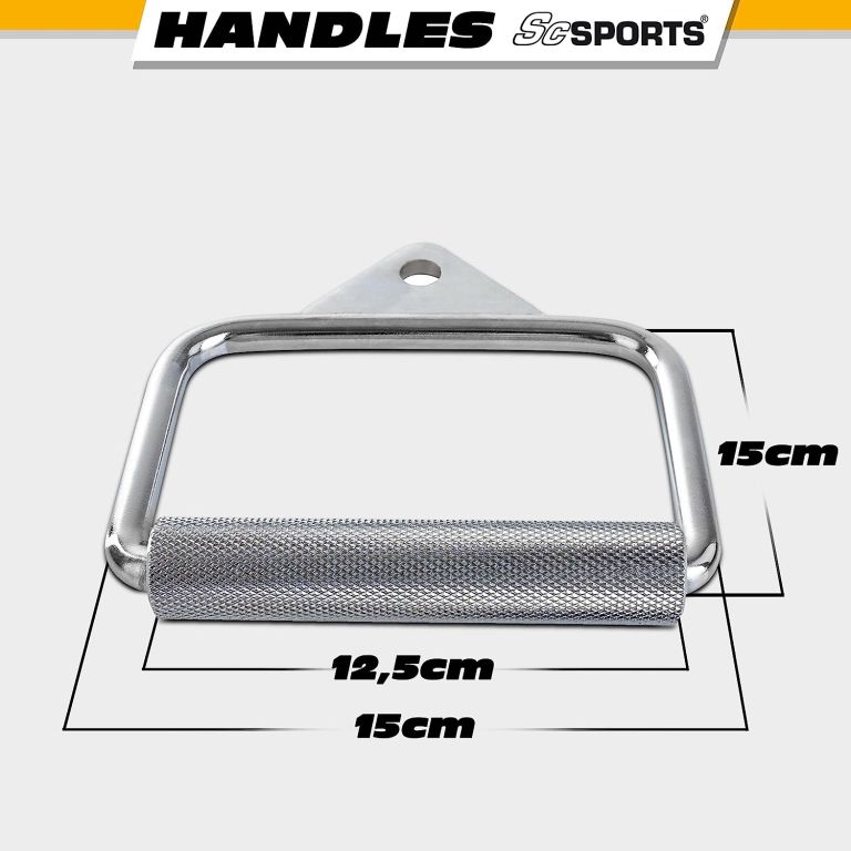 Vyrobeno z kvalitní oceli pro dlouhou životnost a odolnost. Snadná montáž pomocí karabiny umožňuje rychlou výměnu příslušenství. Úchop je kompatibilní s většinou posilovacích věží a snadno se udržuje čistý.
