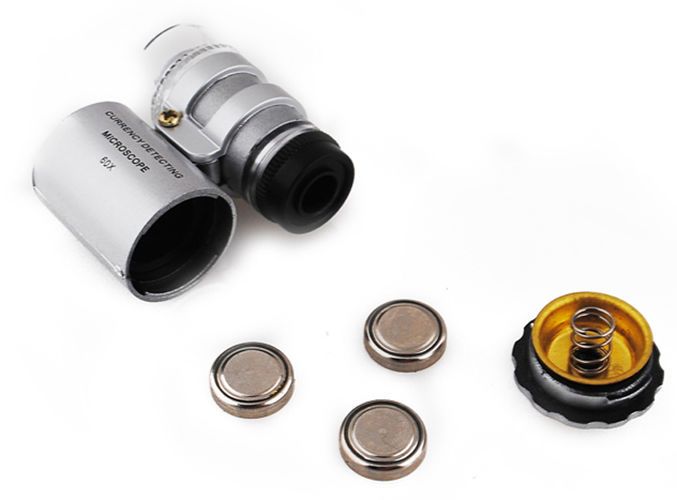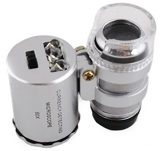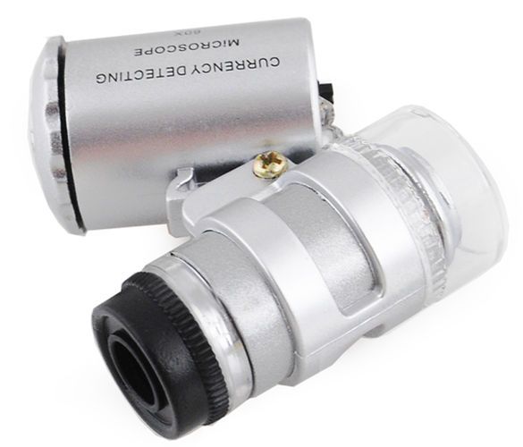 Vestavěné UV světlo vám dovolí např. zkontrolovat pravost bankovek. Díky nevelkým rozměrům si lze mikroskop vždycky vzít s sebou.