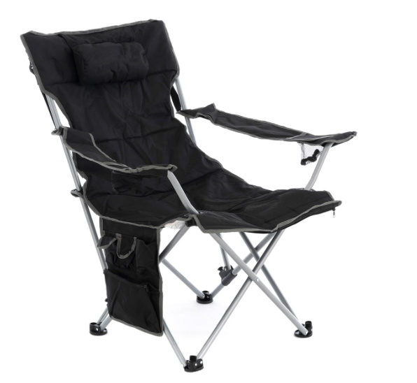 Super pohodlná polstrovaná skládací židle s polštářem, pěkné široké područky, odnímatelná podnožka a nastavitelná do 3 poloh. Relaxujte v pohodlí.