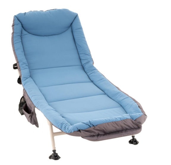 Toto moderní rybářské lehátko má lehkou ocelovou konstrukci navrženou pro dobrou odolnost a stabilitu a snadnou manipulaci.