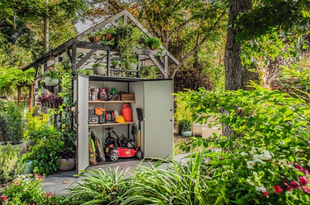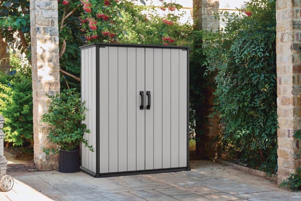 Skříň Premier High Store šedá svým jednoduchým designem perfektně zapadne do každé zahrady bez ohledu na designový koncept exteriéru.