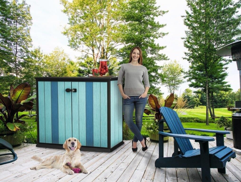 Do zahradního boxu Patio Store v šedočerné barvě uložíte například dva odpadkové koše o 120 litrech. Přičemž nakloněný práh vám usnadní jejich manipulaci dovnitř i ven. Vnitřní prostor poskytne dostatek úložného místa pro nábytek i polštáře, zahradní náčiní, bazénové vybavení nebo sekačku na trávu. Tenká polička jde zcela vyjmout. Pevná střecha je ideální pro umístění květináčů, reproduktorů nebo zahradního nářadí. Panely DUOTECH™ odolávají povětrnostním vlivům, ať jde o déšť nebo slunce. Díky tomu si Patio-Store ponechá svůj vzhled po celá léta a imitace dřevěných prken bude stále stejně efektní. Přetíratelný materiál DUOTECH™ se velmi snadno čistí a udržuje. Navíc obsahuje UV ochranu, takže barvy zůstanou na slunci stále stejné. Tento zahradní box je tak perfektní pro vnitřní i venkovní použití.