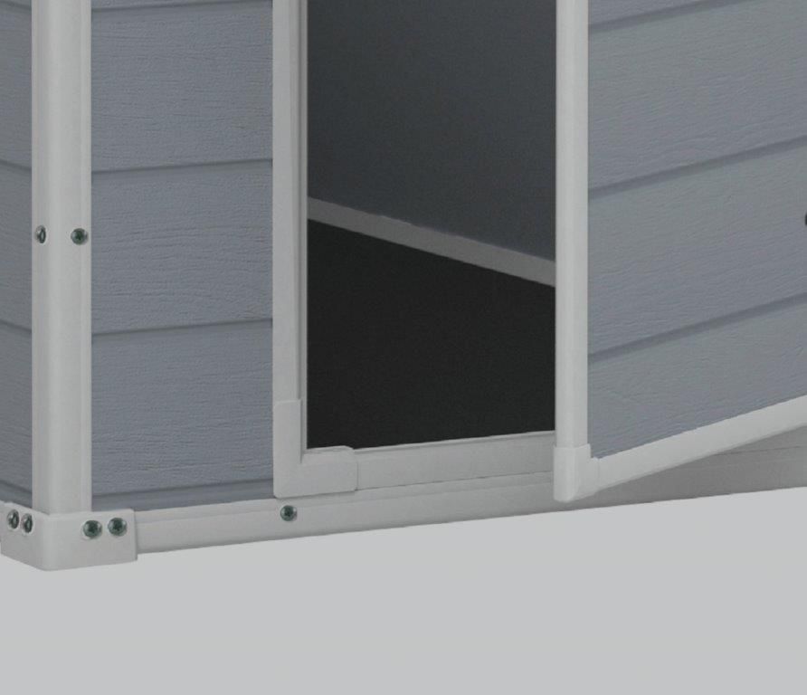 Zahradní domek Manor 4 x 6 má optimální velikost a je velice snadné jej sestavit. Je vybavený silnou sedlovou střechou, která vydrží zatížení až do 75 kg/m², má dvojité dveře i malé okénko a ventilační systém s regulovanou cirkulací vzduchu. Podlahový panel vydrží zatížení až 150 kg/m² a spolehlivě ochrání obsah před bahnem, deštěm, sněhem i hlodavci a jinými škůdci. Přední dveře jsou opatřeny ocelovou západkou, na kterou lze nasadit visací zámek pro větší bezpečnost. Domek spojuje estetiku pravého dřeva s nejlepšími vlastnostmi plastů, je zcela odolný vůči UV záření i extrémním srážkám a povětrnostním vlivům. Navíc je nenáročný na údržbu, nemusí být vůbec impregnován a k čištění vám tak postačí jenom hadřík s horkou vodou.