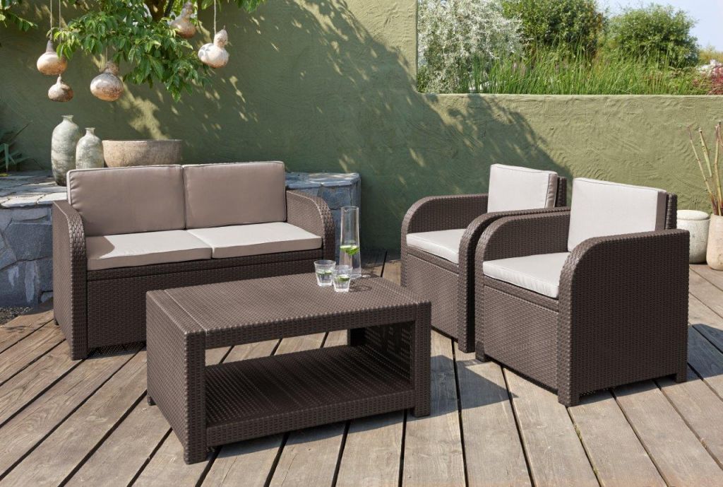 Set zahradního nábytku Modena značky Keter připomíná svým designem přírodní ratanovou vazbu. Skvěle tak doplní jak moderní, tak i tradiční look okolí. Užijte si pohodlí díky měkkým sedákům.