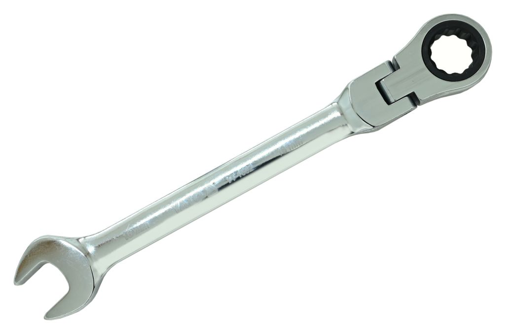 Klíč očkoplochý ráčnový s kloubem s dvanáctihranným profilem opatřeným ráčnou s jemným 72 zubým chodem.