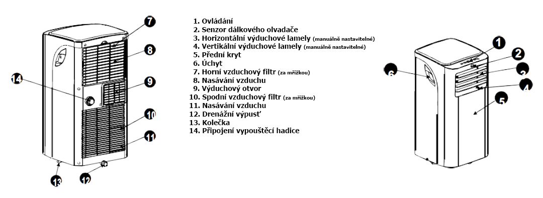 drenážní hadice slouží k odvodu vody. Výrobce nám dodal, že klimatizace je vhodná pro místnosti do 25 m2.