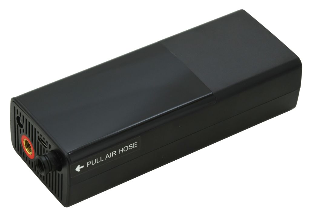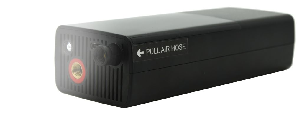 Hustící hadice je uložena v těle zařízení a po jejím vyjmutí dojde k zapnutí zařízení. Kompresor je navíc v přední části opatřen LED přísvitem.