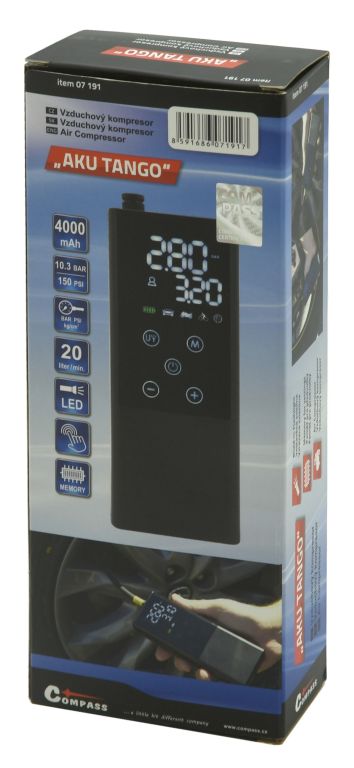 Akumulátorový vzduchový kompresor v kompaktním provedení s dotykovým ovládáním, funkcí Auto-stop a vlastní pamětí na přednasavené hodnoty.