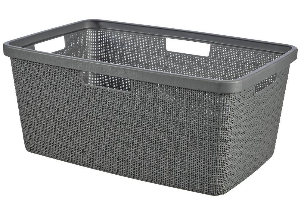 Koš na čisté prádlo Jute o objemu 46L spřírodním tkaným vzhledem Praktický plastový koš na prádlo o objemu 46L v tmavě šedé barvě. Jednoduchá manipulace díky dvěma pevným úchytům. Kvalitní provedení značky Curver.