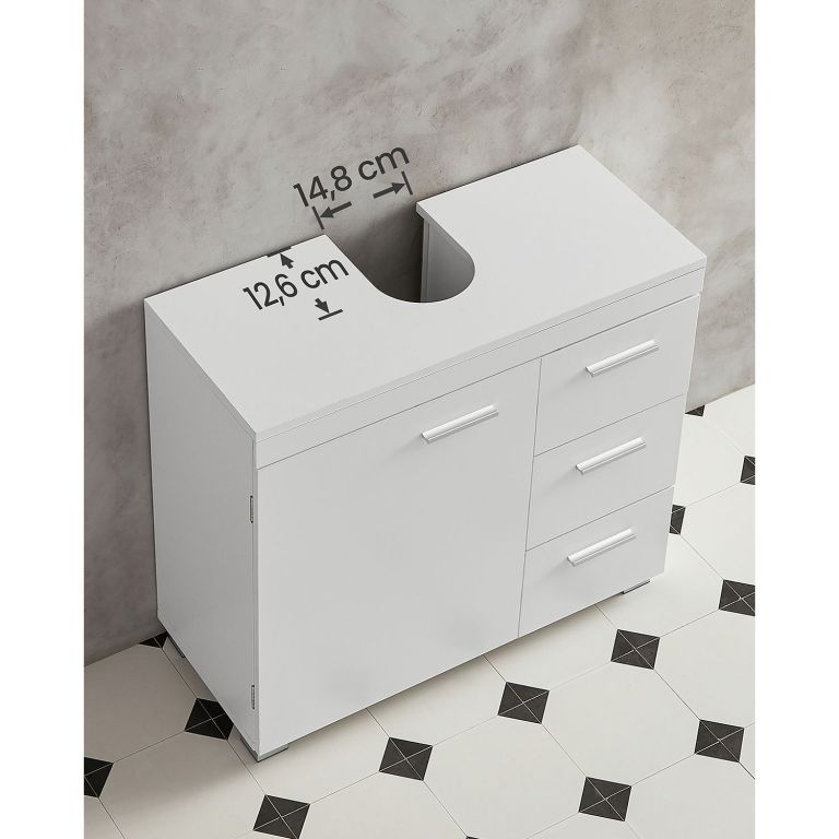 Vytvořte si v koupelně pořádek a harmonii díky elegantní bílé skříňce pod umyvadlo. Dostatek úložného prostoru pro ručníky, kosmetiku i čisticí prostředky vám usnadní každodenní rutinu a dodá vaší koupelně čistý, moderní vzhled.