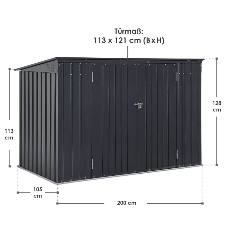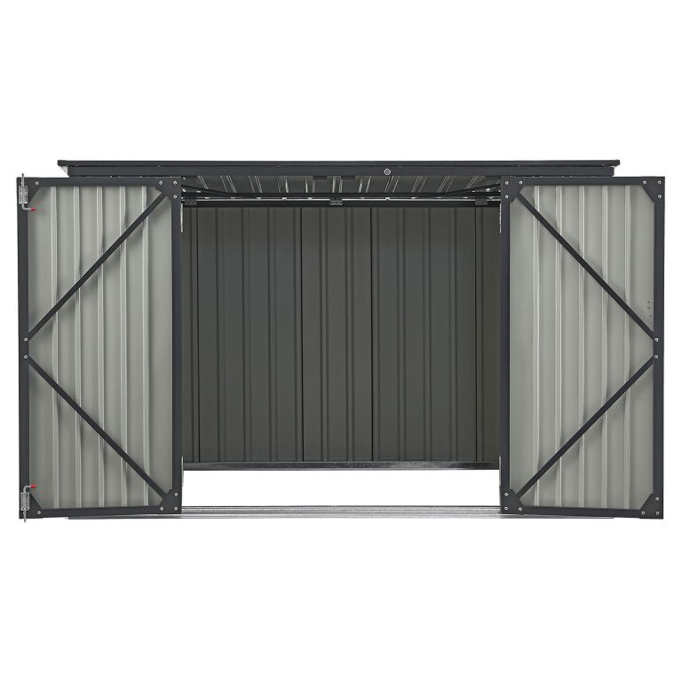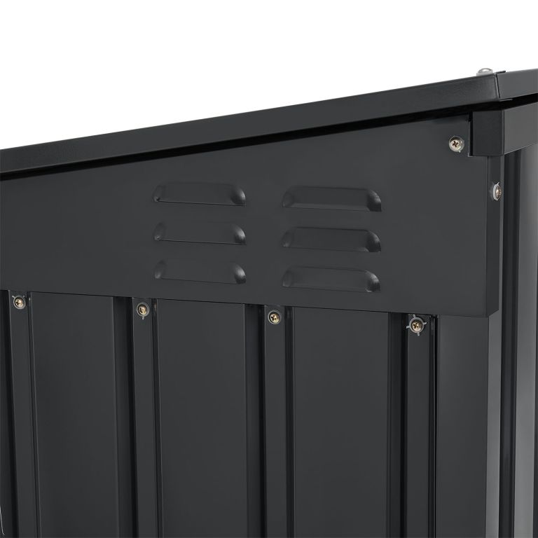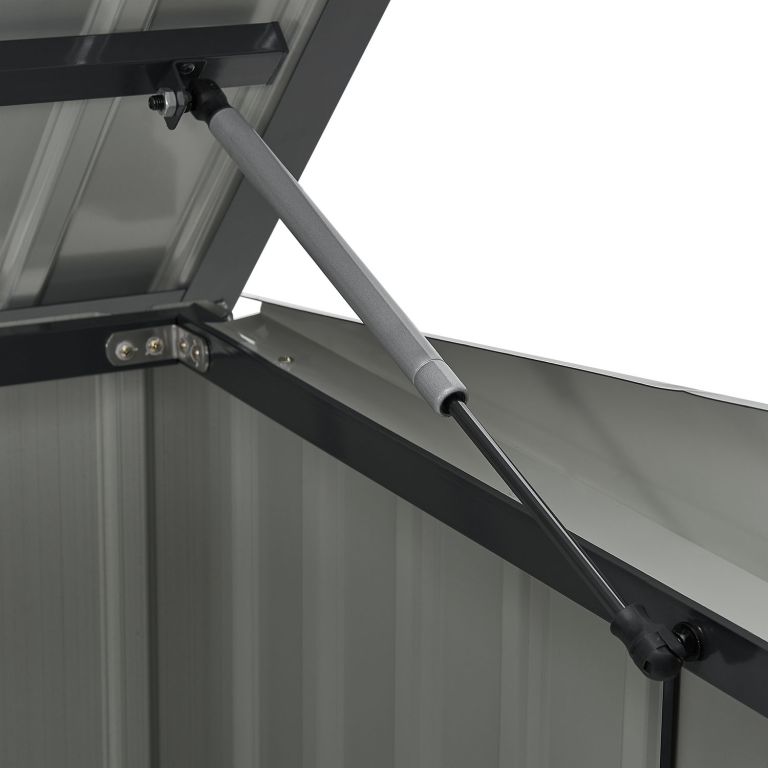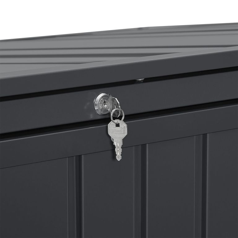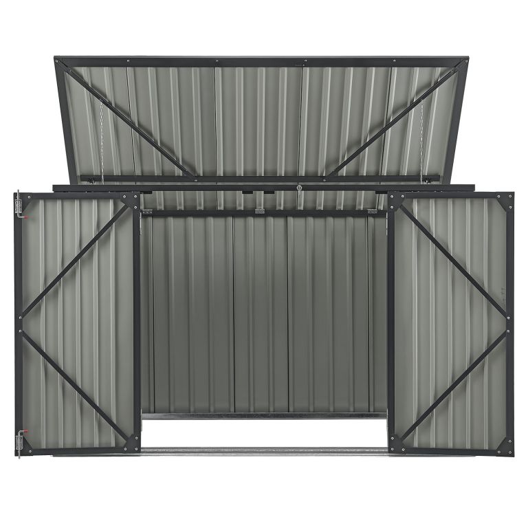 Kovová konstrukce z pozinkovaného plechu je odolná vůči povětrnostním vlivům i UV záření a díky větracím otvorům po stranách se uvnitř nedrží vlhkost ani zápach. Box můžete využít také jako úschovnu na jízdní kola, sekačku nebo zahradní nábytek. Skvěle zapadne do moderní i klasické zahrady.