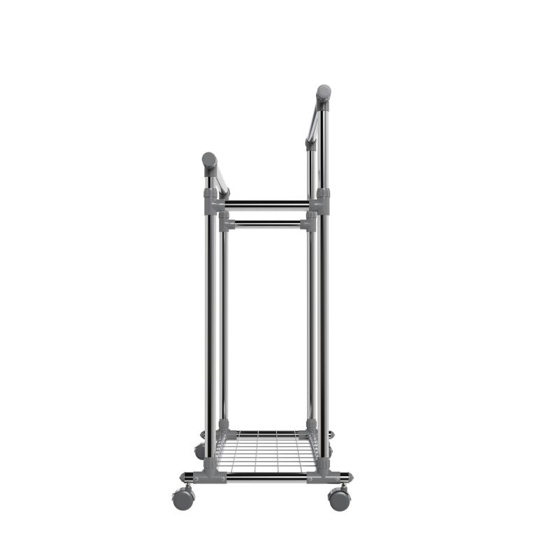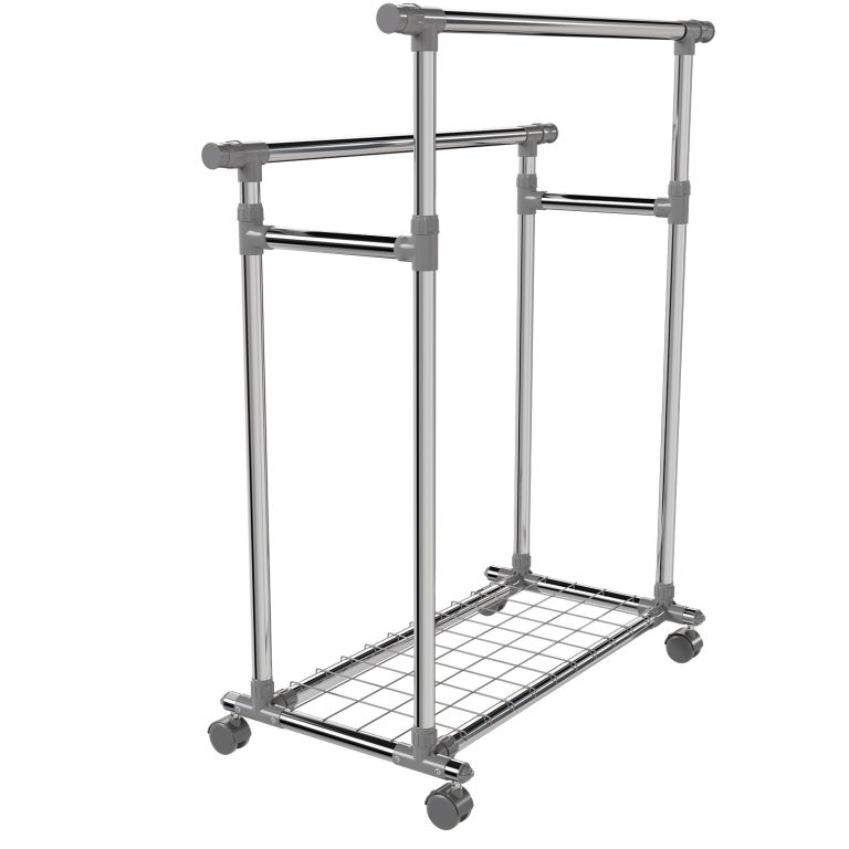 Kovový stojan na oblečení na kolečkách, 2 tyče + police