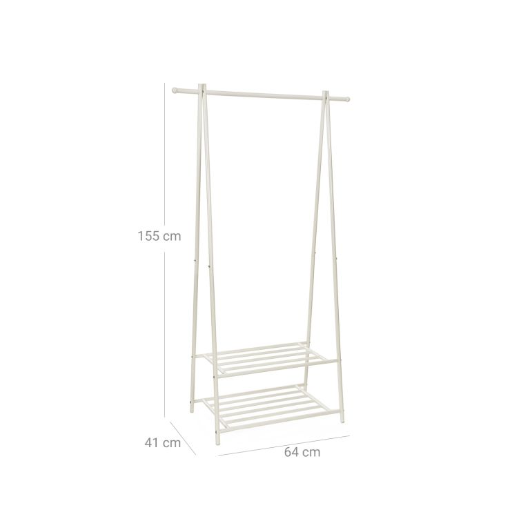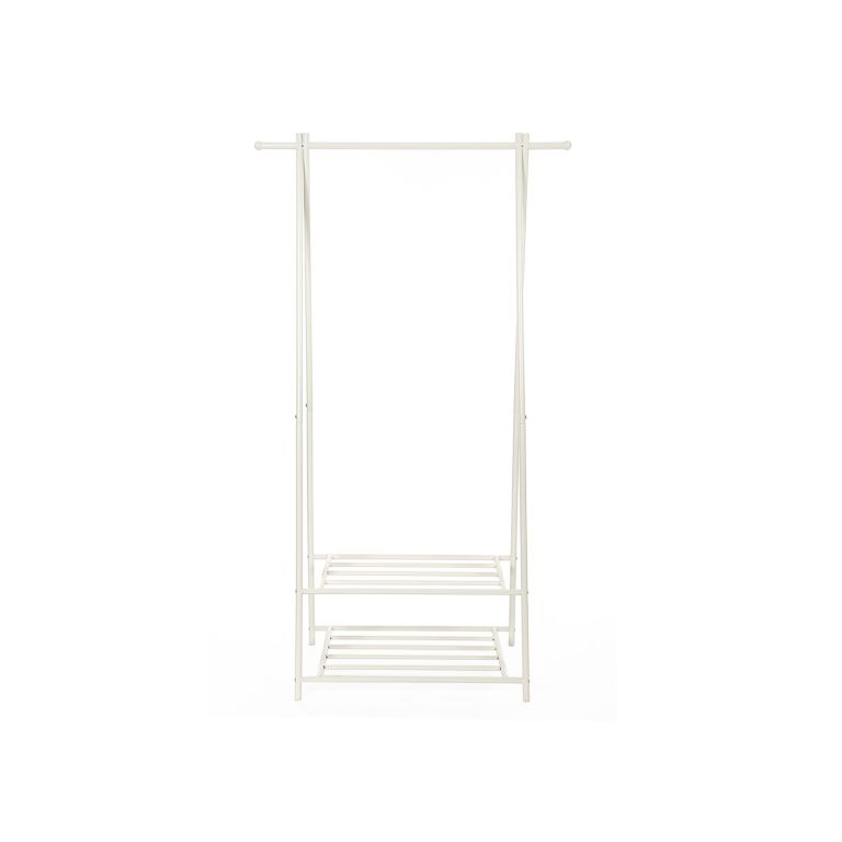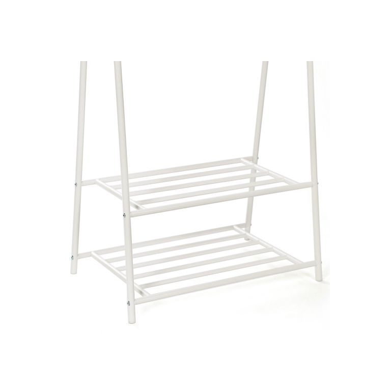 Kovový stojan na oblečení se dvěma policemi na boty, bílý