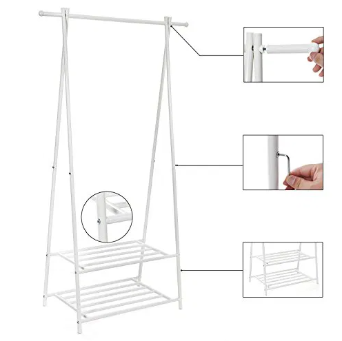 Kovový stojan na oblečení se dvěma policemi na boty, bílý