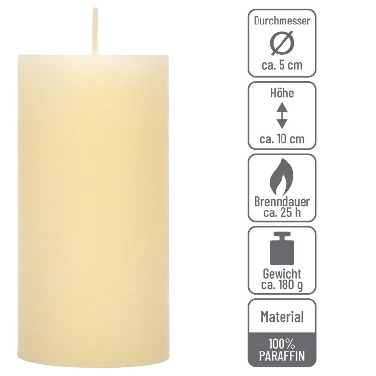 Vysoká svíčka v barvě krémová o výšce 10 cm s výdrží 25 h vytvoří útulnou atmosféru při každé příležitosti. Sada obsahuje 16 ks.