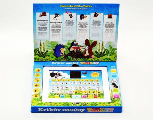 Dvojjazyčný dotykový tablet s LCD displejem učí děti zábavnou formou číst, psát a počítat. Obsahuje 6 nahraných básniček J. Žáčka. Vloženy 3 ks baterií AAA 1,5 - vložené baterie slouží pouze pro předváděcí účely. Vhodný prod děti od 3 let.