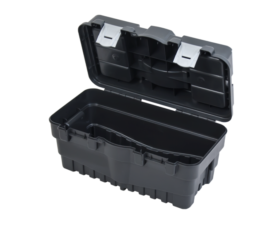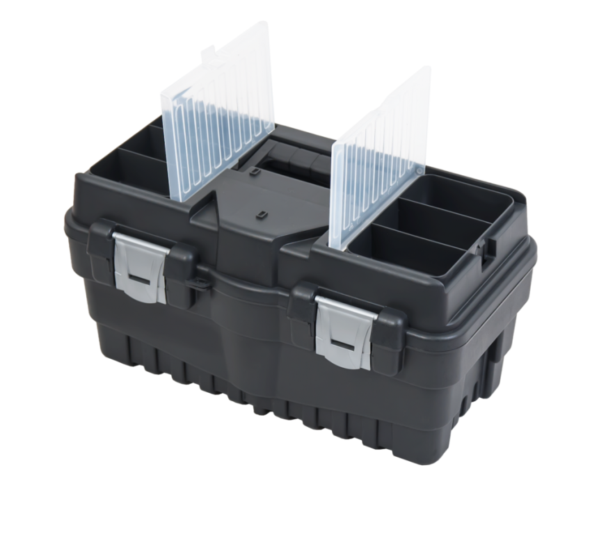 Prostorný univerzální kufr na nářadí s praktickým odnímatelným platem. Kufr disponuje organizérem na víku pro umístění například šroubů či matic z průhledného plastu, takže na tyto drobné předměty vidíte.