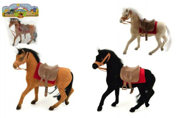 Kůň se sedlem a ohlávkou pro všechny obdivovatele a milovníky koní. Kůň je plastový s povrchovou úpravou fliška. Figurku využijete například při hraní na vaší farmě.Vhodné od 3 let.