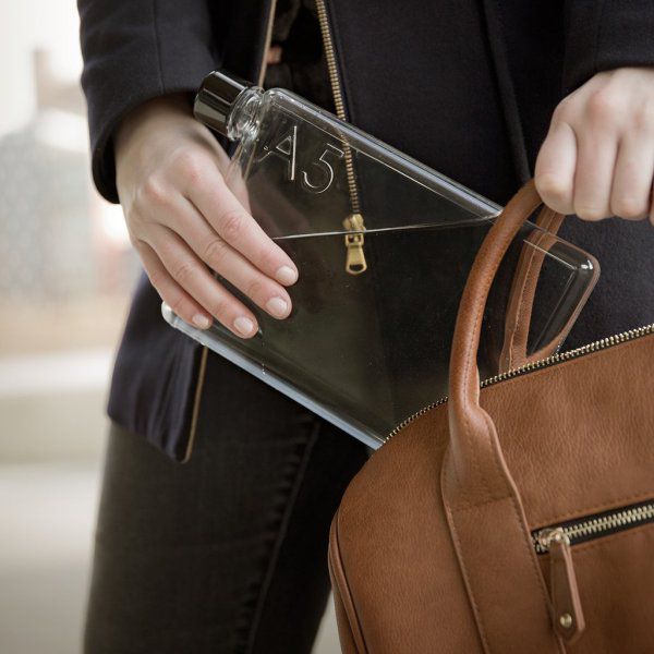 Láhev na vodu ve tvaru sešitu - A5, je navržena tak, aby se vám vešla do kapsy, kabelky nebo se dobře držela při běhání. Je elegantní, štíhlá, skladná, lehká (váha 200 gramů nenaplněná a 950 gramů naplněná vodou) a hlavně ekologická, recyklovatelná a opakovatelně použitelná. Vyrobena je z nezávadného plastu bez BPA, který vydrží i hluboké chlazení a zahřívání až do 50 stupňů Celsia. Primárně určena pro vodu, ale vhodná i pro jiné nápoje.