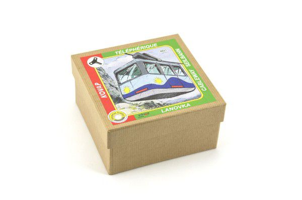 Tento model modré lanovky na klíček dokáže jezdit po provázku. Ujede kolem 4 metrů s maximálním převýšením 0,5 metrů. Model je vyroben z plechu. Na povrchu je prášková barva.