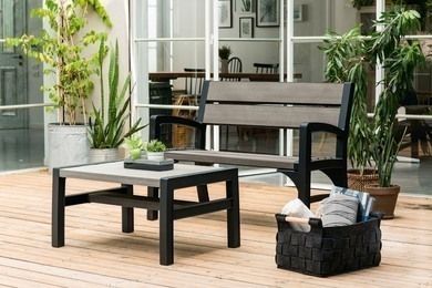 Lavice je charakterizována zajímavým provedením, připomínajícím přírodní vzor dřeva, který je odolný proti účinkům vnějších faktorů a zároveň velice pevný, díky tomu se bude hodit na každou zahradu. Lavice je odolná vůči nepříznivým povětrnostním vlivům, snadno se čistí a má snadnou a rychlou montáž.