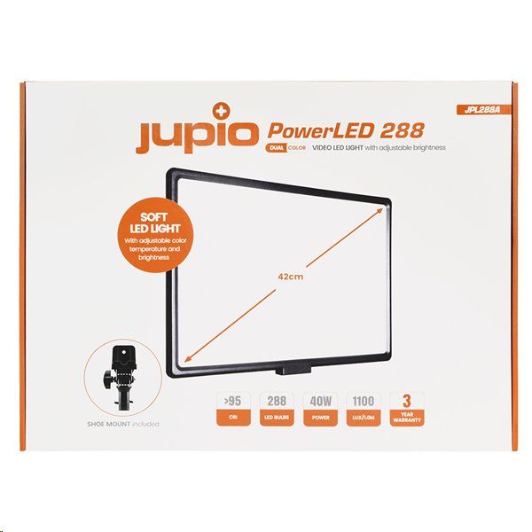 Plošné ateliérové i venkovní osvětlení Jupio PowerLED JPL288A se pyšní mimořádnou 42 cm úhlopříčkou, takže zvládne zajistit stálý přísun světla.