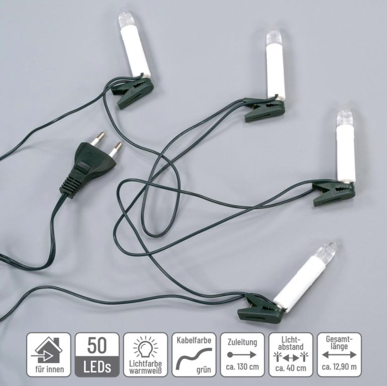 Vytvořte si kouzelnou vánoční atmosféru s LED řetězem o 50 teplých bílých svíčkách, který krásně ozdobí stromek i interiér.