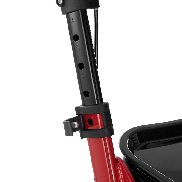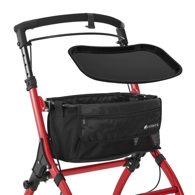 Lehké hliníkové chodítko s brzdou, tácem a taškou, červené