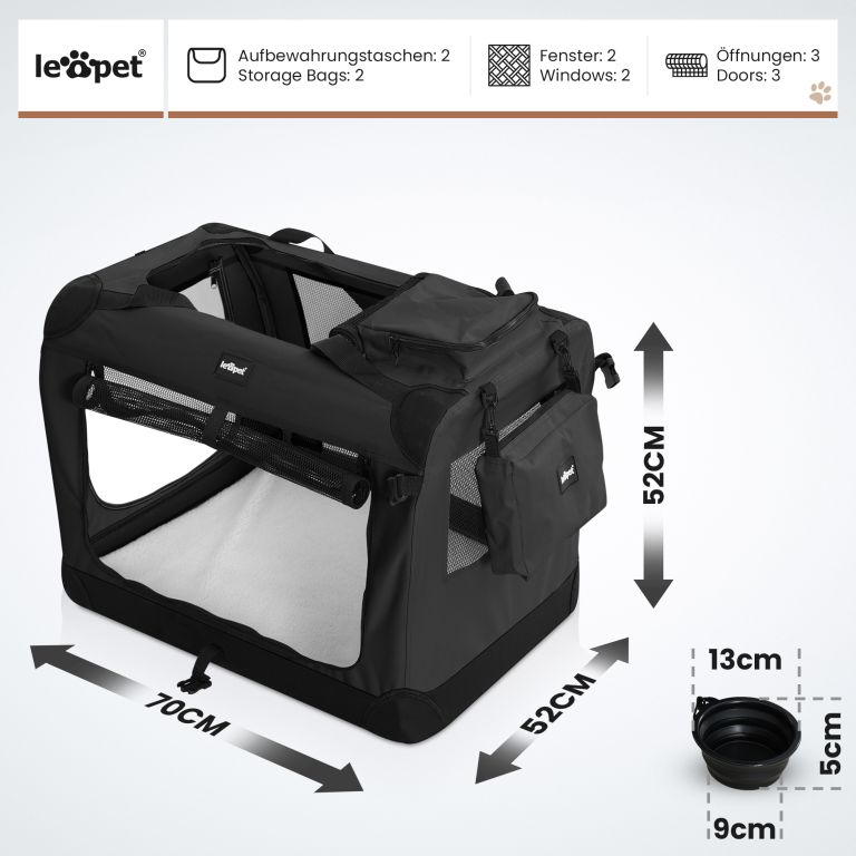 Leopet Přepravní box pro psy L, 70 x 52 x 52 cm, černý