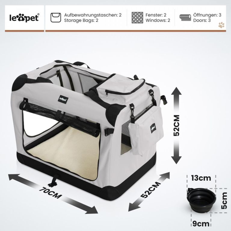 Leopet Přepravní box pro psy L, 70 x 52 x 52 cm, šedý