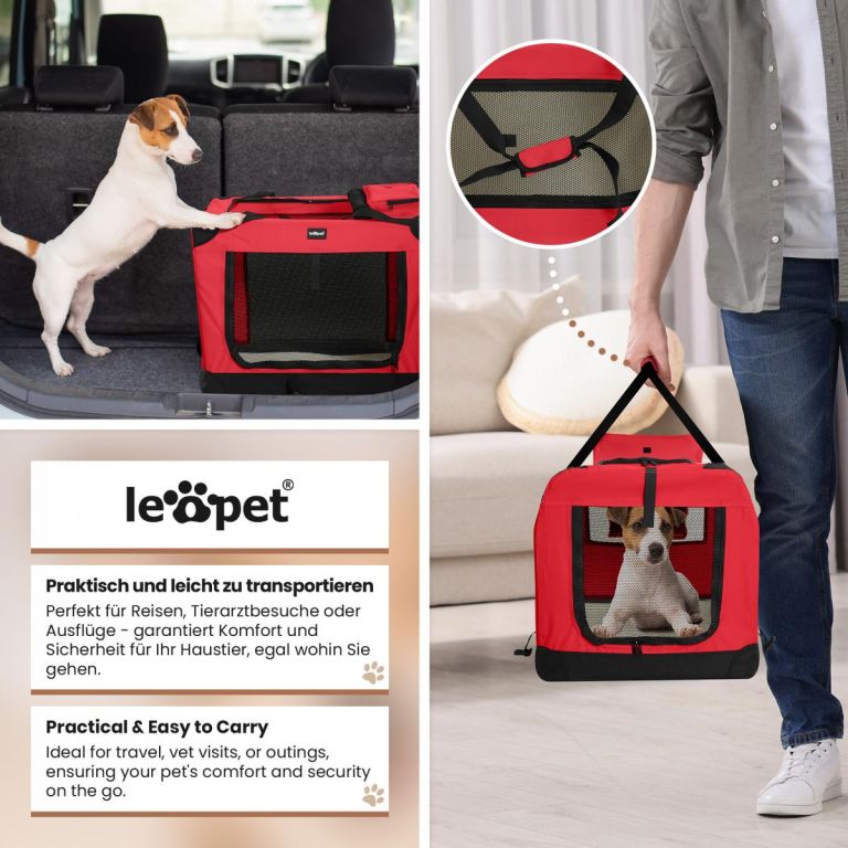 Leopet Přepravní box pro psy M, 60 x 42 x 42 cm, červený