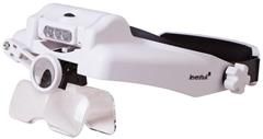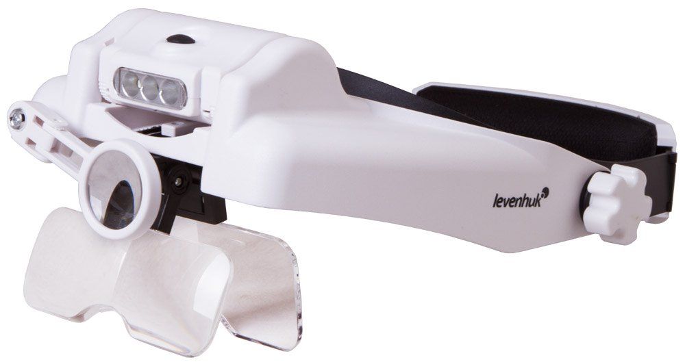 Náhlavní lupa Zeno Vizor H7 značky Levenhuk bude nepostradatelným pomocníkem při dlouhodobé práci s drobným písmem nebo malými předměty. Upevňuje se na hlavu jako čelovka a ponechává tak obě ruce volné pro práci. Vyměnitelné čočky s 1x až 3,5x zvětšením se snadno nacvaknou do speciálního držáku. Přídavná čočka nabízí 8x zvětšení. Pokud se zabýváte kontrolou kvality, manipulací s drobnými předměty, vyšíváním, modelováním, šperky, mikročipy nebo opravami hodinových mechanismů, tato lupa vám vše usnadní. Můžete ji používat každý den k práci, ale i ke čtení, vyplňování křížovek a psaní dopisů. Přesně vytvarovaný ergonomický tvar zaručuje pohodlí při používání. Můžete si vybrat nejen zvětšení lupy, ale i náklon vůči hlavě. V praktickém obale je k dispozicí 5 výměnných čoček se zvětšením 1x / 1,5x / 2x / 2,5x / 3,5x. Přídavná čočka pro pravé oko je přidělaná šroubkem. Lupa má navíc vestavěné světelné LED diody se dvěma úrovněmi jasu pro práci v šeru a ve tmě. Světelný paprsek je nasměrovaný přesně na zkoumaný předmět. Díl s LED diodami jde celý sundat. Osvětlení napájí 3 kusy baterií AA, které jsou součástí balení.